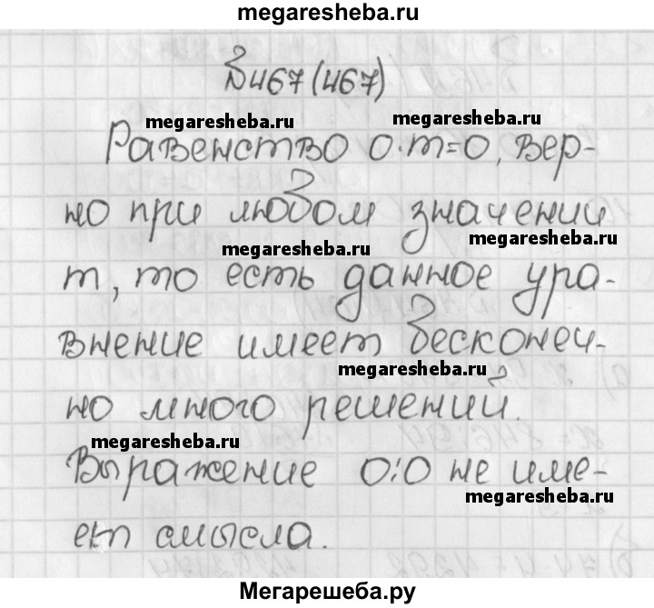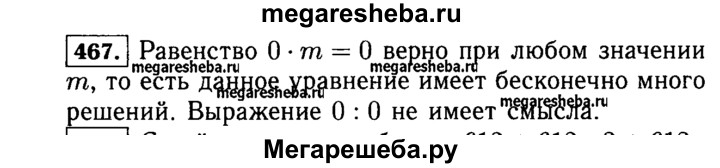 467. При каких значениях т верно равенство 0 * т = 0? Можно ли из этого равенства найти единственное значение m? Можно ли разделить 0 на 0?