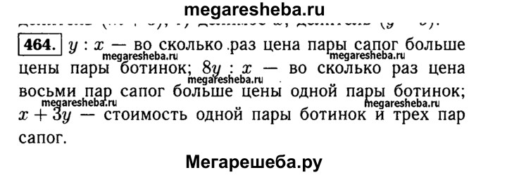 476. Пусть цена пары ботинок х р., а цена пары сапог у р. Что означают выражения: у : х; 8у : х; х + Зу?