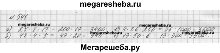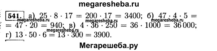 541. Выполните умножение: а) 25 * 8 * 17; б) 47 * 4 * 5; в) 4 * 36 * 250; г) 13 * 50 *6.