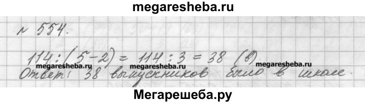 554. Каждому выпускнику школы решили подарить по одинаковому букету цветов. Для этого купили 114 гвоздик. Когда в каждый букет добавили ещё по 2 гвоздики, то в нём оказалось 5 цветков. Сколько выпускников было в школе?