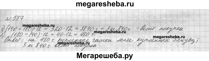 Подробный решебник (ГДЗ) по Математике за 5 (пятый) класс - готовый ответ глава 1 § 3 тема 14 - 557. Авторы учебника: Виленкин, Жохов, Чесноков, Шварцбурд. Издательство: Мнемозина 2017-2019.