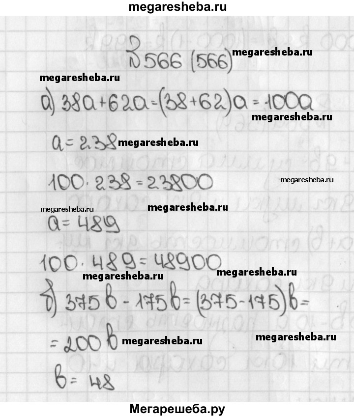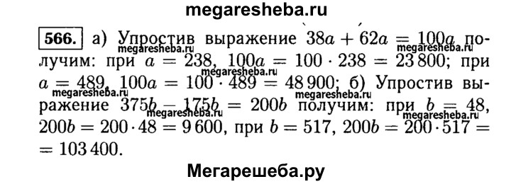 566. Найдите значение выражения: а) 38а + 62а при а = 238; 489; б) 375b - 1756 при Ь = 48; 517.