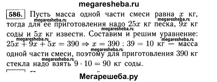 586. Для приготовления бутылочного стекла берут 25 частей песка, 9 частей соды и 5 частей извести (по массе). Сколько потребуется соды, чтобы изготовить 390 кг стекла?