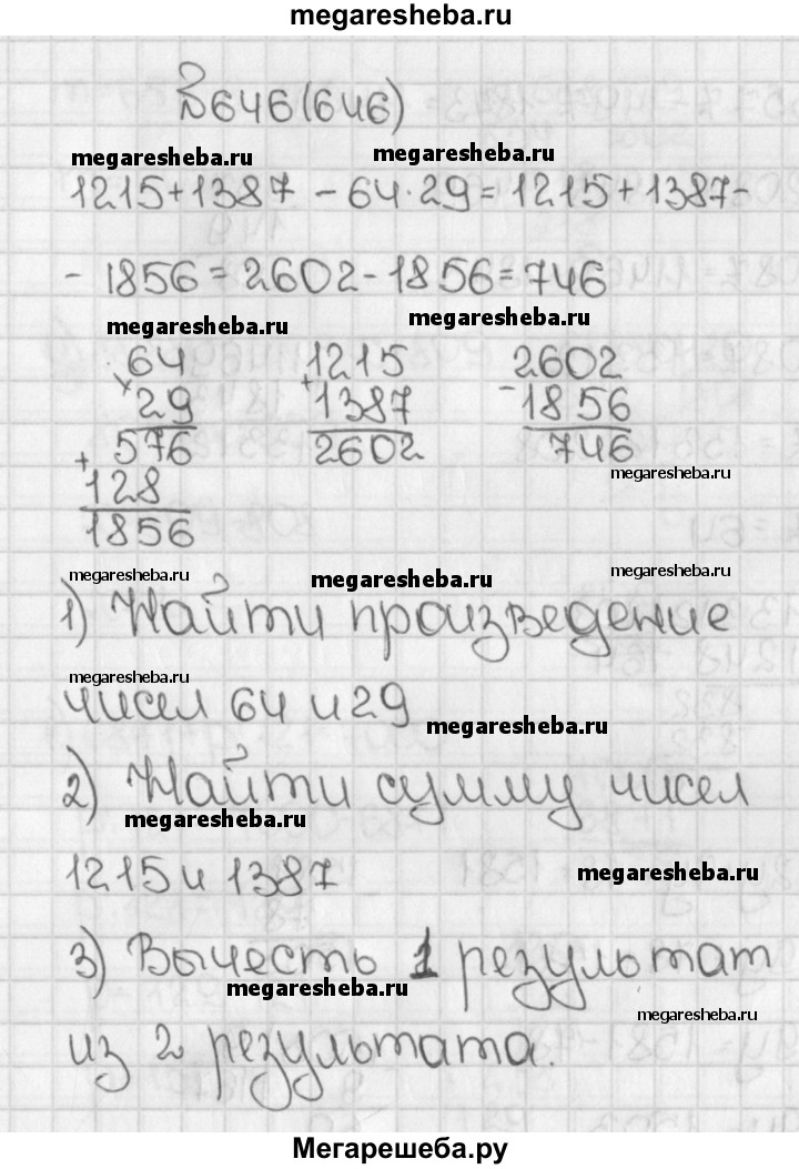 Подробный решебник (ГДЗ) по Математике за 5 (пятый) класс - готовый ответ глава 1 § 3 тема 15 - 646. Авторы учебника: Виленкин, Жохов, Чесноков, Шварцбурд. Издательство: Мнемозина 2017-2019.