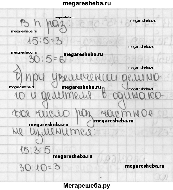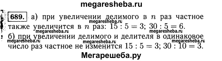 689. Изменится ли частное двух чисел, если: а) делимое увеличить в 2 раза; в 3 раза; б) делимое и делитель увеличить в одинаковое число раз? Приведите примеры.