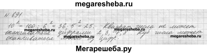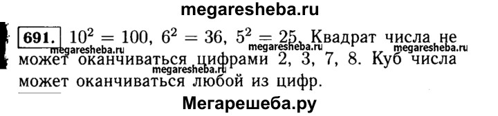 691. Попробуйте найти число, квадрат которого оканчивается цифрой 0; 6; 5; 7. Какой цифрой может оканчиваться квадрат числа? куб числа?