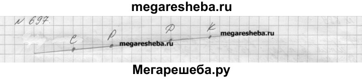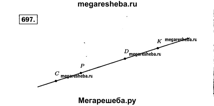 697. Через точки Р и К проведите прямую и отметьте на ней точки С и D так, чтобы точка D лежала между Р и К, а точка Р — между С и D.