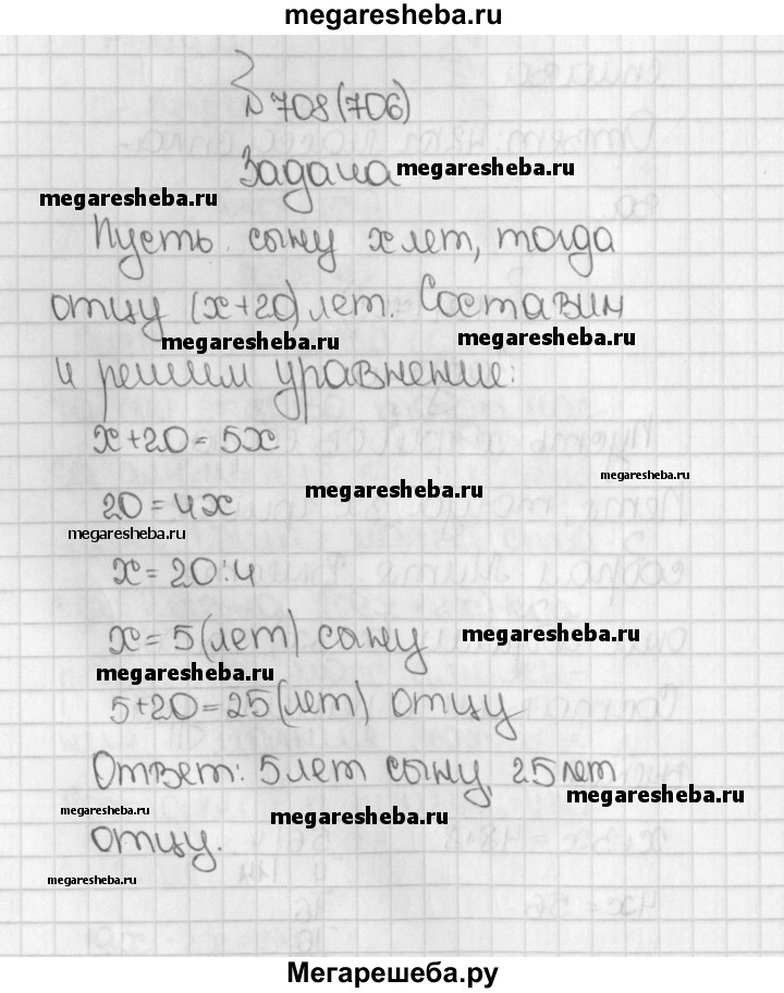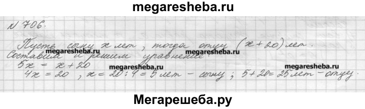 706. Отец старше сына на 20 лет, а сын моложе отца в 5 раз. Сколько лет отцу и сколько лет сыну?