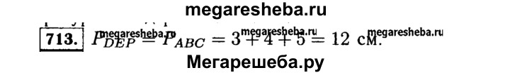 713. Треугольники ABC и DEP равны. Чему равен периметр треугольника DEP, если АВ = 3 см, ВС = 4 см, СА = 5 см?