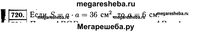 720. Чему равна сторона квадрата, если его площадь 36 см2?