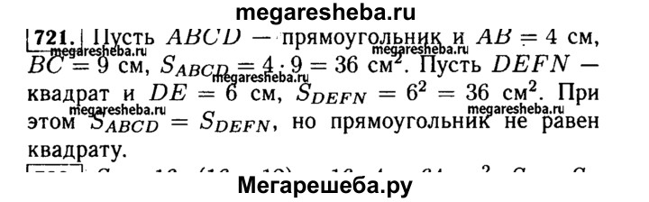 721. Приведите примеры неравных фигур, имеющих равные площади.