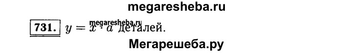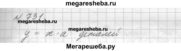 731. Обозначим буквой х число деталей, которые изготовляет рабочий за 1 ч, а буквой у — число деталей, которые он изготовит за а ч. Напишите формулу, выражающую у через а и х.