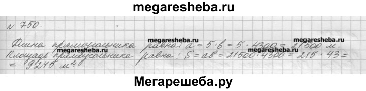 750. Найдите площадь прямоугольника, если его ширина 4 км 300 м, а длина в 5 раз больше.