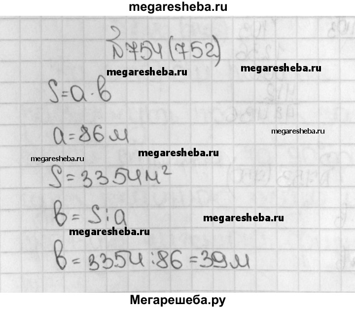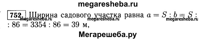 752. Длина садового участка 86 м, а его площадь равна 3354 м2. Найдите ширину этого участка.