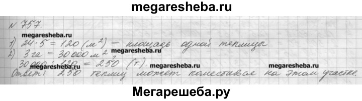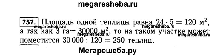 757. Сколько теплиц длиной 24 м и шириной 5 м может поместиться на участке земли площадью 3 га?