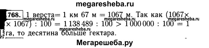 768. в стари ну площади земельных участков измеряли в десятинах (это площадь квадрата со стороной, равной десятой части версты). Сравните десятину с 1 га.