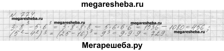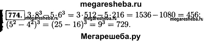 774. Найдите значения выражений: 3 * 83 - 5 * б3; (52 - 42)3.