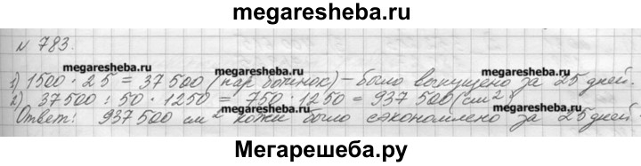 783. Благодаря рационализаторскому предложению удалось сэкономить на каждых 50 парах ботинок 1250 см2 кожи. Сколько кожи сэкономлено за 25 рабочих дней, если каждый день выпускается 1500 пар ботинок?