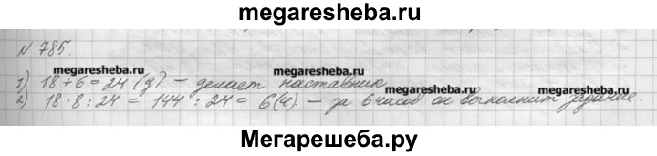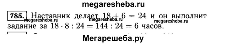 785. Молодой рабочий выполнил задание за 8 ч, изготовляя в час по 18 деталей. За сколько часов выполнит то же задание его наставник, если в час он делает на 6 деталей больше, чем молодой рабочий?