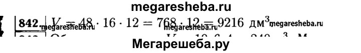 842. Найдите объём прямоугольного параллелепипеда, если его измерения — 48 дм, 16 дм и 12 дм.