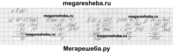 860. Вычислите устно: а)60 * 6 - 120 : 80 * 30/? б) 200: 50 * 25 140 : 60/? в)125 * 2 : 10 * 40 – 300/? г)490 : 7 * 20 + 210 : 50/? д) 40 * 10 : 50 * 125 – 160/?