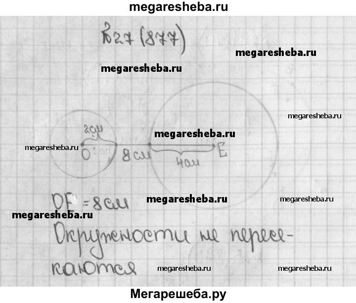 877. Отметьте точки О и Е так, чтобы ОЕ = 8 см. Постройте окружность с центром О и радиусом 2 см и окружность с центром Е и радиусом 4 см. Пересекаются ли эти окружности?