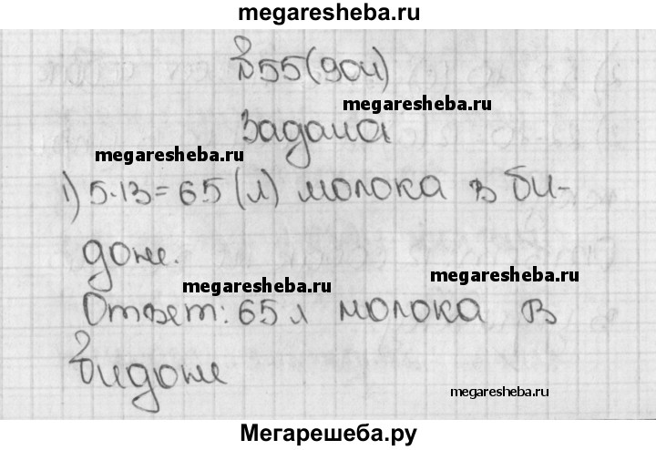904. Сколько молока в бидоне, если 4 этого молока составляет 13 л?