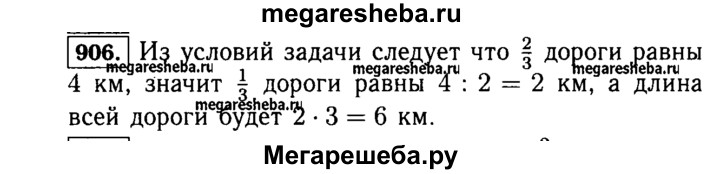 906. Человек прошёл 2/3 дороги. Какова длина всей дороги, если он прошёл 4 км?