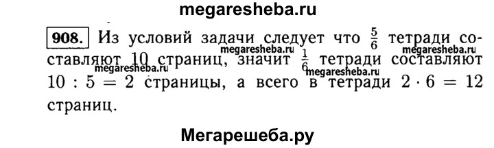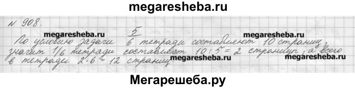 908. Миша исписал 10 страниц тетради, что составляет - всей тетради. Сколько страниц в тетради?