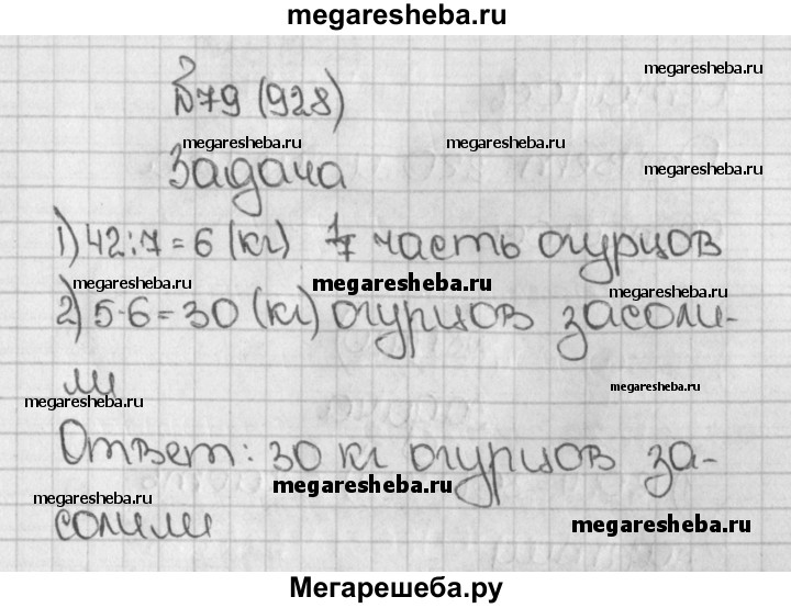 928. На огороде собрали 42 кг огурцов и 5/7 всех огурцов засолили. Сколько килограммов огурцов засолили?