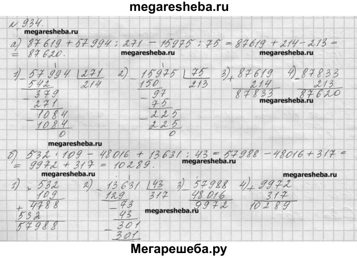 934. Найдите значение выражения: а) 87619 + 57994 : 271 - 15975 : 75; б) 532 * 109 - 48016 + 13631 : 43. Для выражения а) составьте программу и схему вычисления.