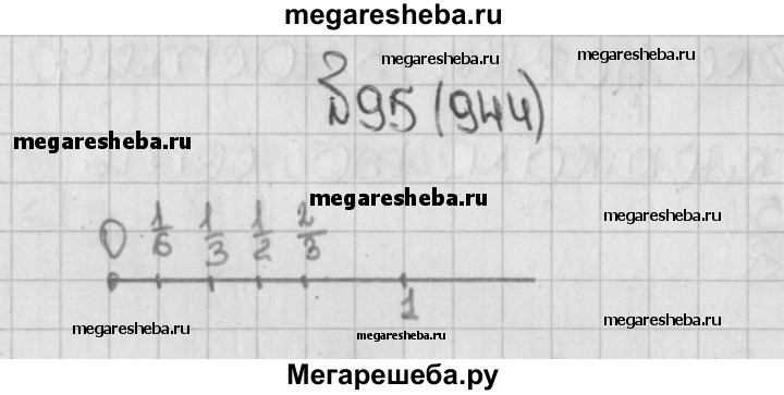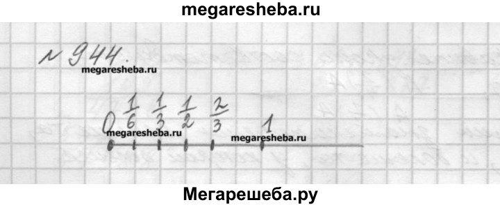 944. Единичный отрезок равен длине 6 клеток тетради. Отметьте на координатном луче точки с координатами 1/2; 1/3; 1/6; 2/3. Какая из этих точек левее всех расположена на луче, а какая правее всех?
