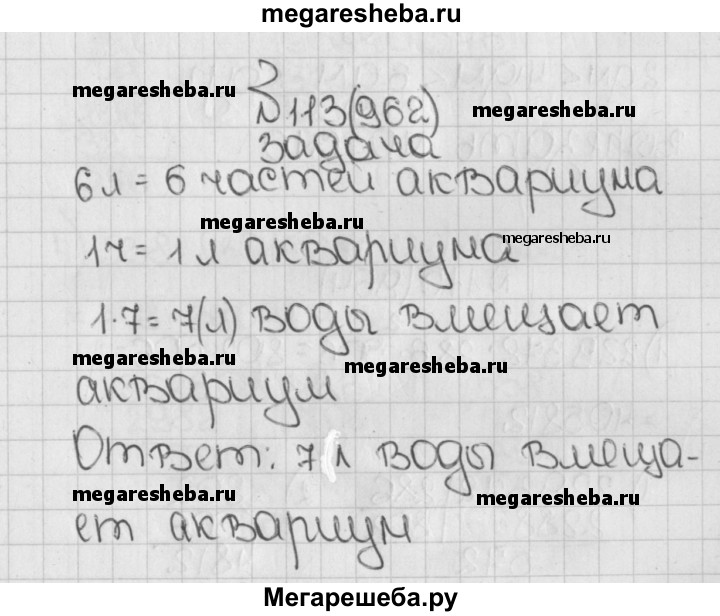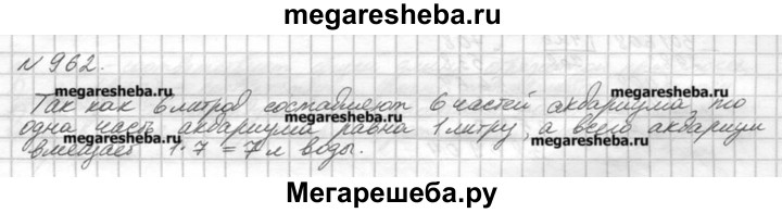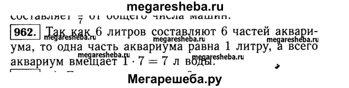 962. В аквариум налили 6 л воды, заполнив 6/7 у его объёма. Сколько литров воды вмещает аквариум?