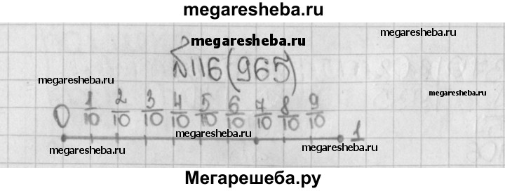 965. Примите за единичный отрезок длину 10 клеток тетради и отметьте на координатном луче числа: 1/10; 2/10; 3/10; 4/10; 5/10; 6/10; 7/10; 8/10; 9/10.