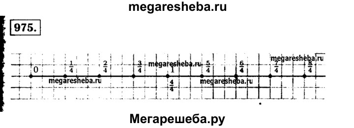 975. Отметьте на луче точки с координатами: 1/4; 2;4; 3/4; 5/4; 6/4; 7/4; 8/4. За единичный отрезок примите длину 12 клеток тетради.