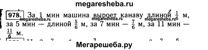978. Машина за 6 мин может вырыть канаву длиной в 1 м. Какой длины канаву выроет машина за 1 мин; 5 мин; 7 мин; 11 мин?