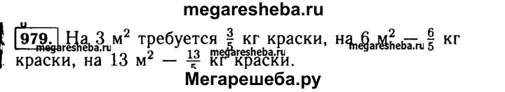 979. Одним килограммом краски можно покрасить 5 м2 поверхности. Сколько понадобится краски, чтобы покрасить 3 м2; 6 м2; 13 м2 поверхности?