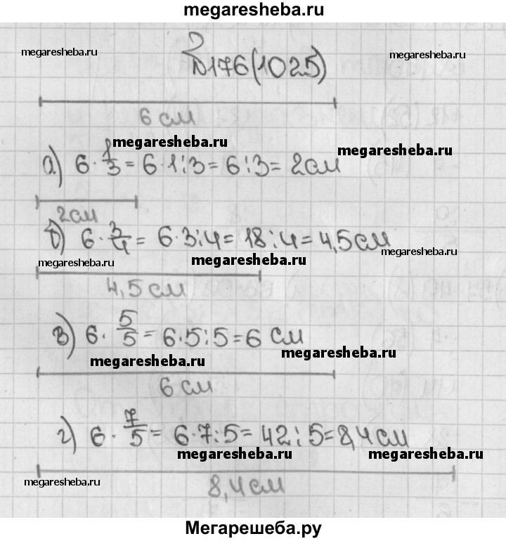 1025. Начертите отрезок. Затем начертите отрезок, длина которого равна: а) 1/3 длины данного отрезка; в) 5/5 длины данного отрезка; б) 3/4 длины данного отрезка; г) 7/5 длины данного отрезка.