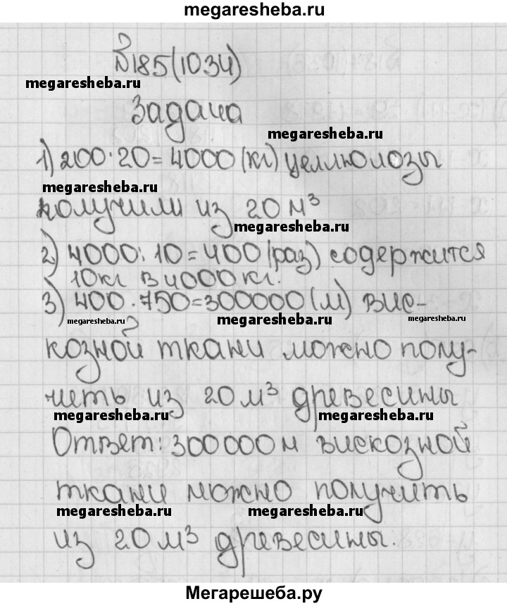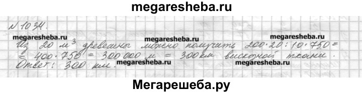 1034. Для изготовления 750 м вискозной ткани требуется 10 кг целлюлозы. Из 1 м3 древесины можно получить 200 кг целлюлозы. Сколько метров вискозной ткани можно получить из 20 м3 древесины?
