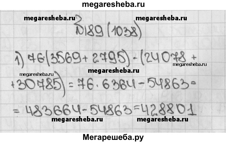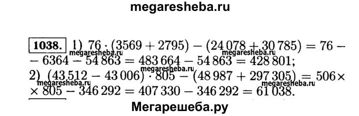 1038. Найдите значение выражения: 1) 76 * (3569 + 2795) - (24 078 + 30 785); 2) (43 512 - 43 006) * 805 - (48 987 + 297 305).