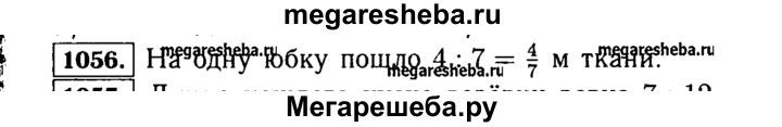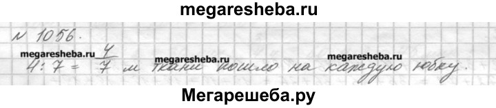 1056. Из 4 м ткани сшили 7 юбок. Сколько ткани пошло на каждую юбку?