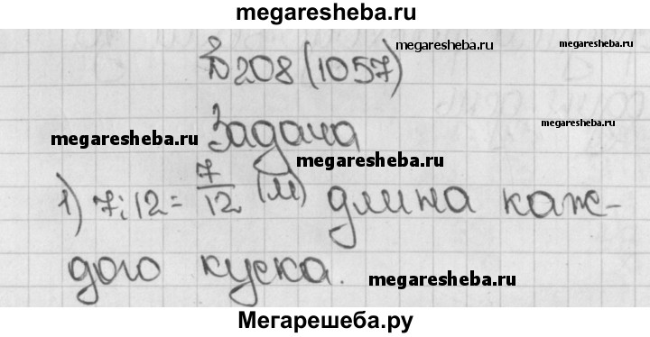 1057. Верёвку длиной в 7 м разрезали на 12 равных кусков. Найдите длину каждого куска.