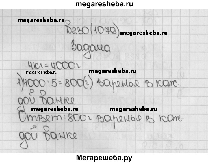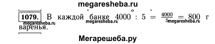 1079. 4 кг варенья разложили в 5 банок поровну. Сколько килограммов варенья в каждой банке?