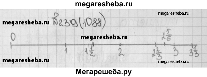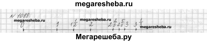 1088. Примите за единичный отрезок длину 6 клеток тетради и отметьте на координатном луче точки с координатами: 3*1/3; 2*2/3; 1*1/2.