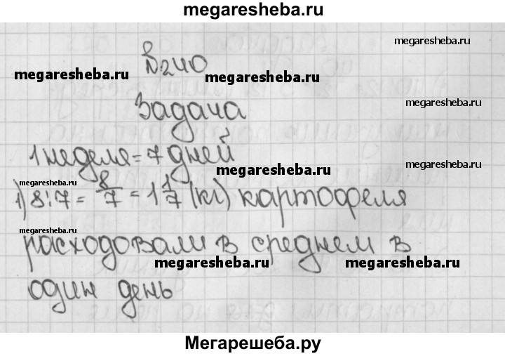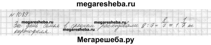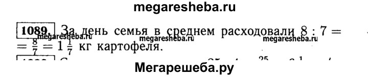 1089. За неделю семья израсходовала 8 кг картофеля. Сколько килограммов картофеля расходовали в среднем в один день?