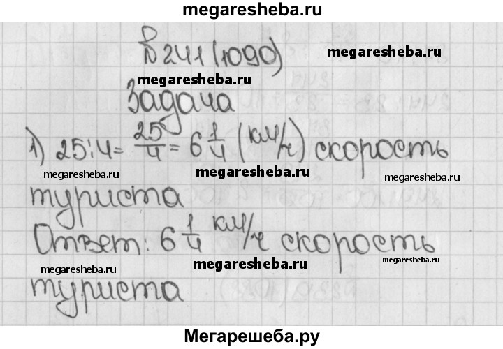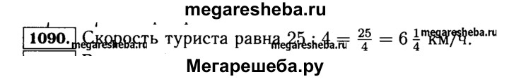 1090. Турист прошёл 25 км за 4 ч. Найдите его скорость.