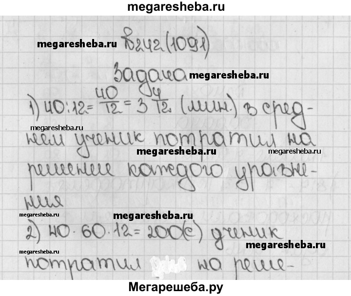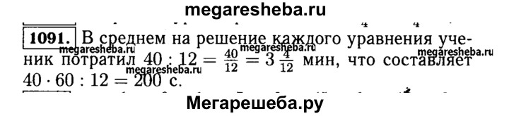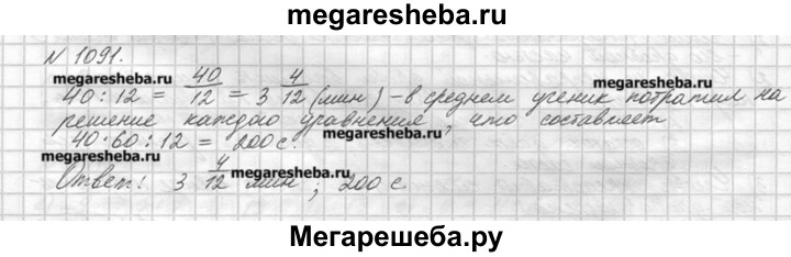 1091. Ученик решил 12 уравнений за 40 мин. Сколько минут в среднем он решал каждое уравнение? Сколько секунд он потратил на решение каждого уравнения?