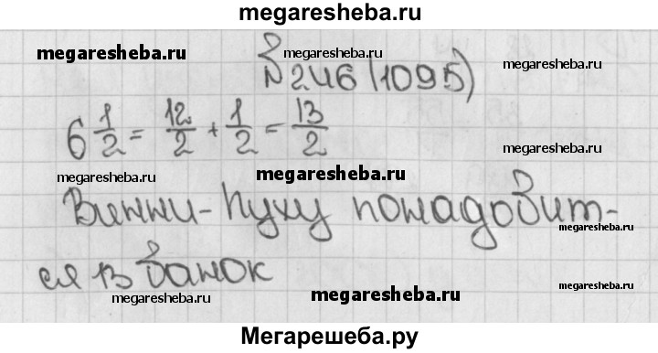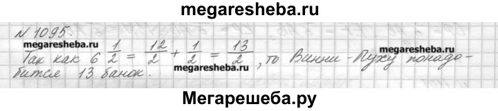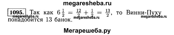 1095. У Винни-Пуха несколько банок, вмещающих по 1/2 кг мёда. Сколько ему понадобится таких банок, чтобы разлить в них 6-1/2 кг мёда?