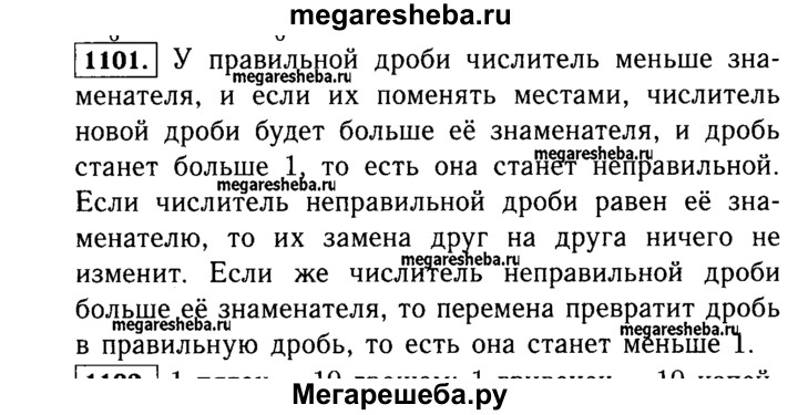 1101. Как изменится правильная дробь и как изменится неправильная дробь, если у каждой из них поменять местами числитель и знаменатель?