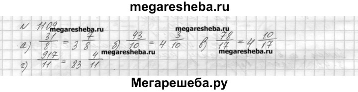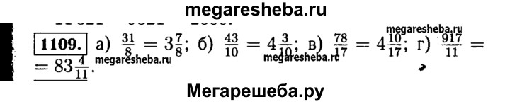 1109. Выделите целую часть числа: a) 31/8 б) 43/10 в)78/11 г)917/11